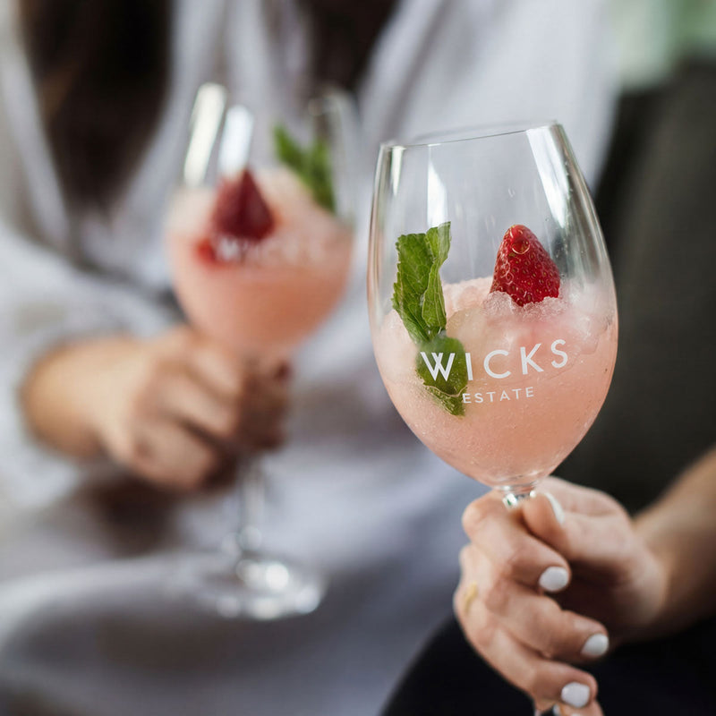 400g strawberries, sliced • 150g caster sugar • 1000mL Wicks Pinot Rosé, chilled